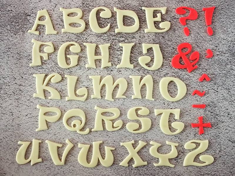 Înălțimea unei litere este de aproximativ 5cm, lățimea este variabilă.