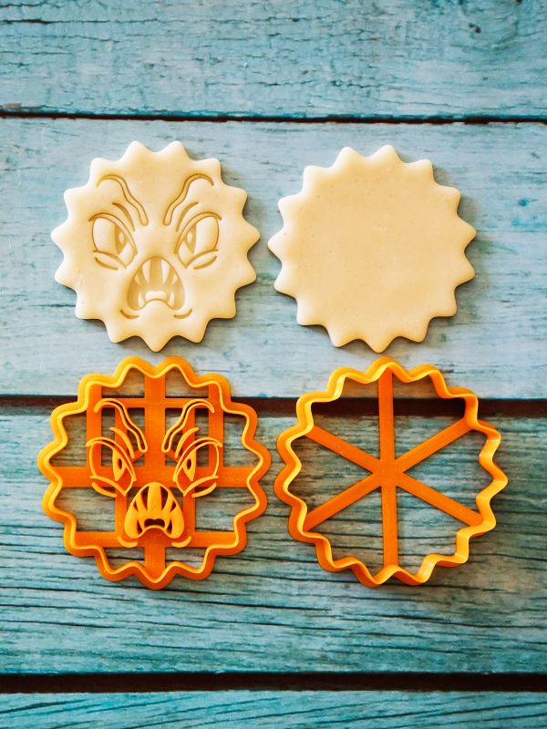 Decupatorul contur este folosit pentru a decupa doar conturul formei. În unele cazuri, decupatorul acesta nu decupează o formă identică cu cea tăiată de decupatorul cu detalii al aceleiași figurine. Acest lucru este necesar pentru a evita apariția unor zone prea subțiri, ascuțite, fragile în aluatul decupat. Pentru nelămuriri legate de acest aspect sau informații suplimentare, vă rugăm să ne contactați.