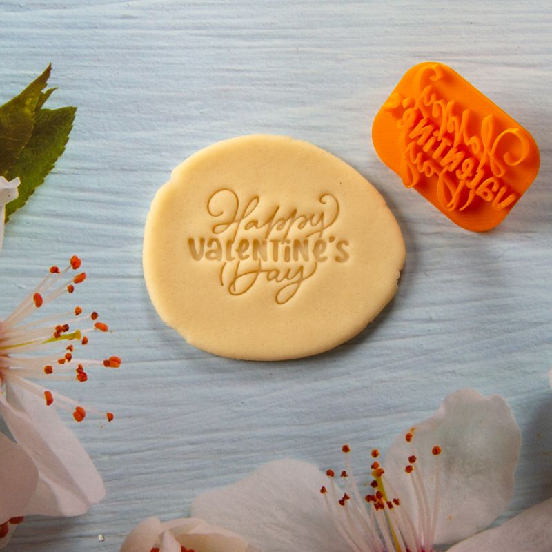 Ștampilă cu text ”Happy Valentine’s Day” potrivită pentru mesaje de iubire scrise în pastă de zahăr, aluat, pastă modelatoare și nu numai!